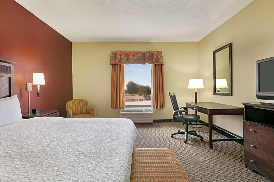 Any corresponding photo may not reflect the specific accessible room type or room feature. This mobility and hearing accessible, one-room, nonsmoking studio suite features one king sized bed , and an accessible roll-in shower. The suite also has a visual alarm and notification devices for the doorbell or door knock and incoming phone calls. The room features include a microwave, refrigerator, wet bar, comfortable soft seating, a HDTV, and easy to operate alarm clock/radio. The free high speed internet access will help you stay connected while on the road. If you prefer not to work at the desk, you can use the convenient lapdesk instead. You'll also enjoy the convenience of having a coffee maker with tea service and iron/ironing board in your room.